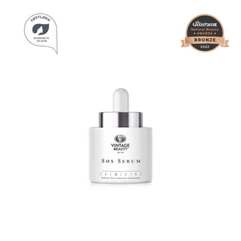 A Vintage Beauty SOS Serum 100%-ban organikus növényi olajok keveréke. Erősen gyulladáscsökkentő, viszketéscsillapító, nyugtató, hámosító hatású szérum, mely széles körben alkalmazható akut bőrgyulladásra (aknék), a faggyútermelés optimalizálására, a seborrhoeas tünetek enyhítésére. Kitűnő baktérium, vírus és gombaölő hatóanyagainak köszönhetően kíméletesen, de gyorsan enyhíti a mikroorganizmusok okozta bőrelváltozásokat.